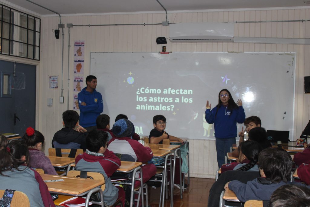 Las actividades dieron inicio con el taller “¿Cómo afectan los astros a los animales?”, dirigido a la educación básica. En esta instancia, estudiantes de tercero y quinto básico pudieron aprender los efectos que los astros como el sol y la luna tienen en la fauna que nos rodea, para después aplicar lo aprendido con un didáctico juego.