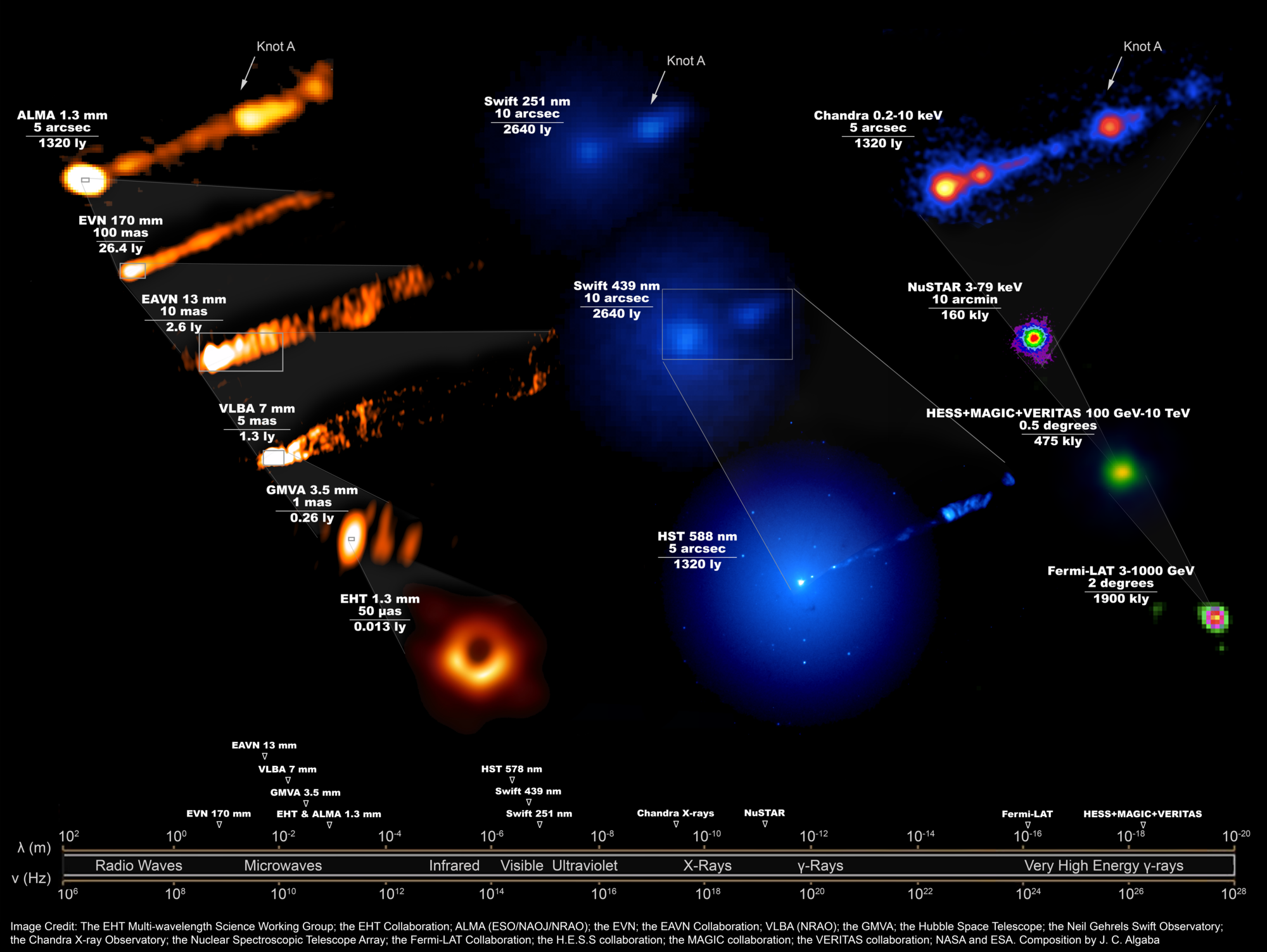 El consorcio EHT está formado por 13 institutos; el Instituto de Astronomía y Astrofísica de la Academia Séneca, la Universidad de Arizona, la Universidad de Chicago, el Observatorio de Asia oriental, la Universidad Goethe de Frankfurt, el Instituto de Radioastronomía Milimétrica, el Gran Telescopio Milimétrico, el Instituto Max Planck de Radioastronomía, el Observatorio Haystack del MIT, el Observatorio Astronómico Nacional de Japón, el Instituto Perimeter de Física Teórica, la Universidad de Radboud y del Observatorio Astrofísico Smithsonian.