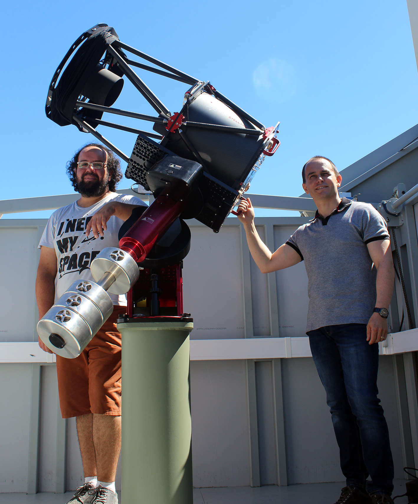 A la izquierda, Magíster Fernando Cortés, encargado de telescopios del Departamento de Astronomía UdeC.